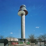由建筑師Gert Wing?rdh設(shè)計的具有雙色主體和交錯平面的頂部結(jié)構(gòu)的阿蘭達控制塔,比起功能性控制塔,更接近現(xiàn)代主義雕塑??刂扑谴笮汀芭艿?”項目中的一部分。