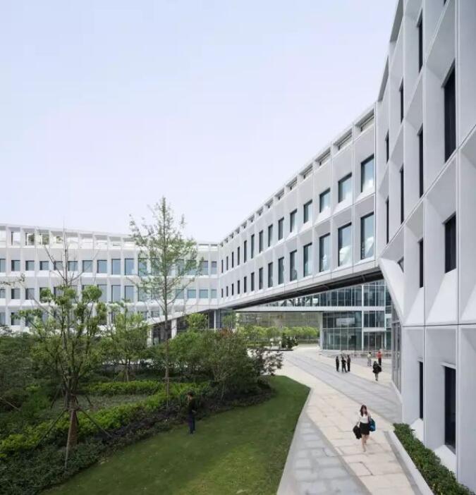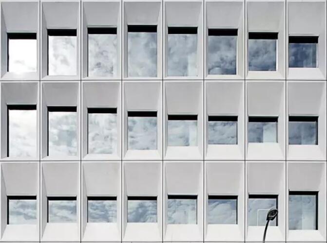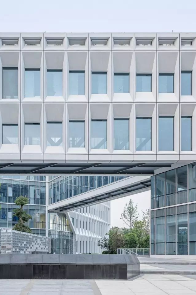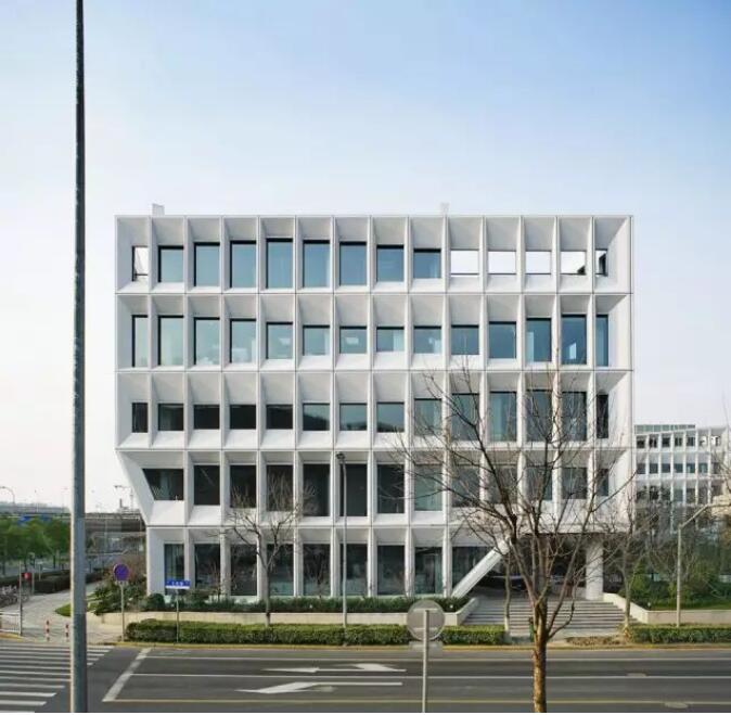 每個(gè)屏板由GRC(玻璃纖維混凝土)材料制成,使用阿爾博?牌52.5級(jí)白水泥,去皮露出白色骨料,整個(gè)幕墻的屏板多達(dá)千個(gè),運(yùn)用數(shù)字化算法對(duì)單元格進(jìn)行邏輯分析形成幕墻優(yōu)化方案,使得最終用26種單元屏板就能組成整體立面上的變化,并貫穿幕墻施工深化和施工過(guò)程。每個(gè)屏板也是集合外圍護(hù)、采光、遮陽(yáng)、通風(fēng)、夜景照明為一體的立面構(gòu)件,先在工廠(chǎng)里預(yù)制組裝,然后將組裝好的屏板運(yùn)輸?shù)浆F(xiàn)場(chǎng)、吊裝裝配起來(lái)。通過(guò)4個(gè)1:1大小的mock up屏板兩年時(shí)間的風(fēng)吹日曬實(shí)驗(yàn),清潔度和精密度還保持很高的水準(zhǔn),之后才對(duì)整個(gè)幕墻進(jìn)行裝配式建造。